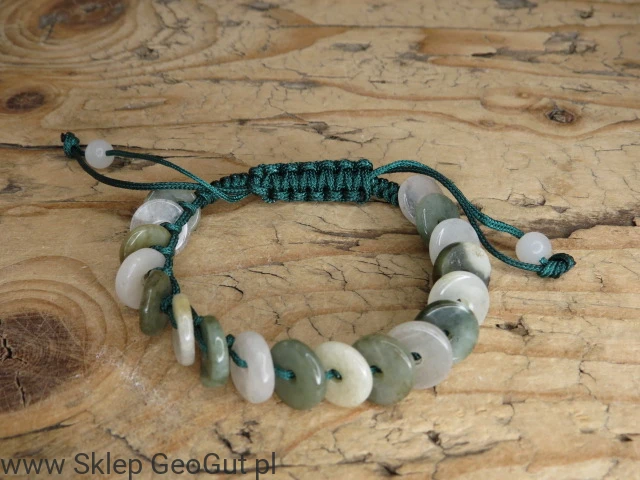 jadeit zielony z Birmy * bransoletka talarki pleciona makrama