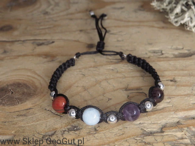 Ta wyjątkowa bransoletka łączy moc czterech żywiołów, tworząc harmonijną całość wspierającą energię, równowagę i ochronę. Spleciona metodą makramy na czarnych sznurkach, z kamieniami o średnicy 8 mm, nawleczonymi na stalowy drut jubilerski, zapewnia trwałość i elegancję. Srebrne kulki oddzielające kamienie wzmacniają ich działanie, wprowadzając dodatkową ochronę i subtelny blask.