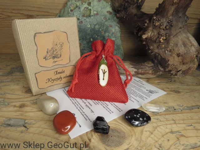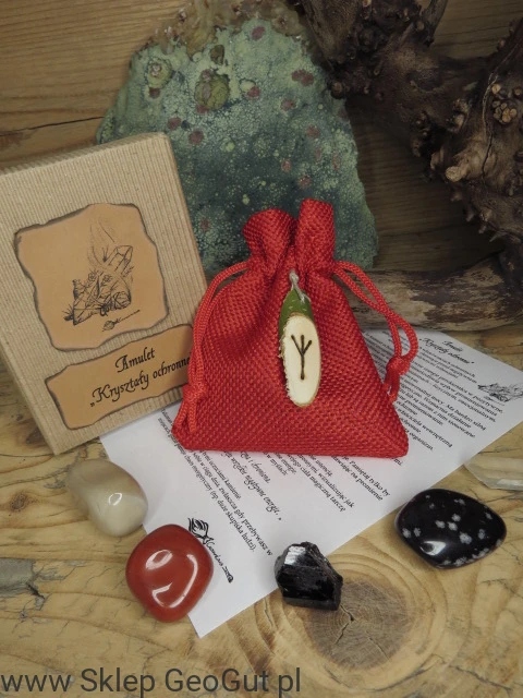 Kamienie o silnych właściwościach ochronnych, odbijające złe życzenia, chroniące przed negatywnym spojrzeniem i negatywnymi wibracjami. W woreczku z runą Algiz znajdziecie kamienie ochronne: czarny turmalin, kryształ górski, obsydian, jaspis czerwony, krzemień. W zestawie opis działania kamieni i rytuał, który pomoże Wam zwiększyć dodatkowo jego moc.