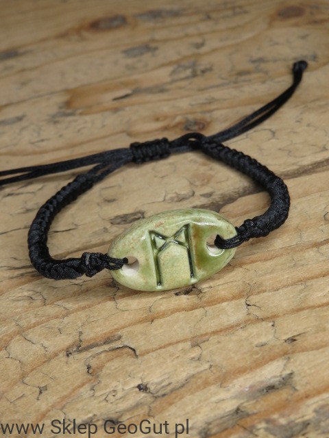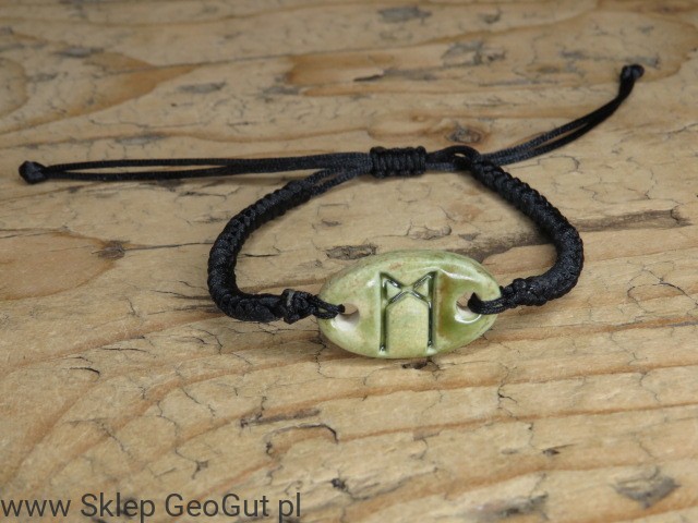 Bransoletka Runa Mannaz – współpraca, harmonia i rozwój osobisty – ceramika i makrama