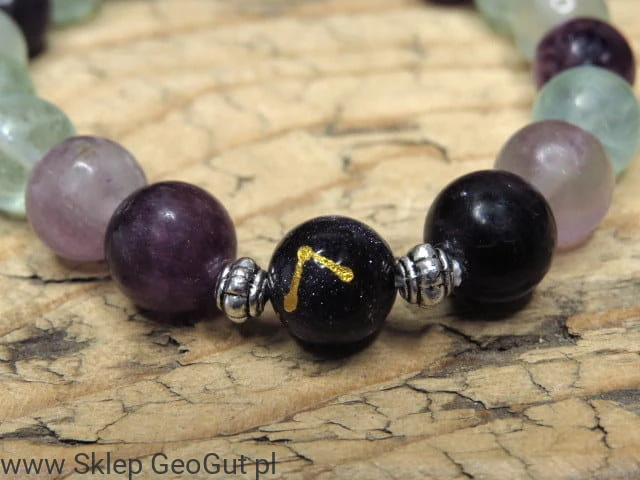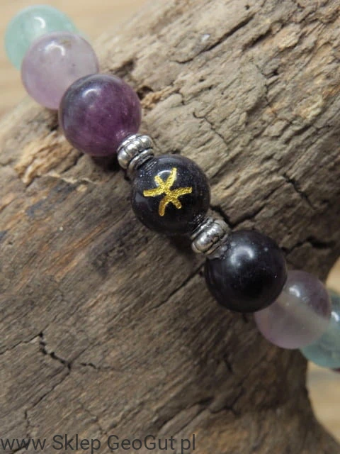 Bransoletka zodiakalna Ryby – fluoryt i Noc Kairu z symbolem