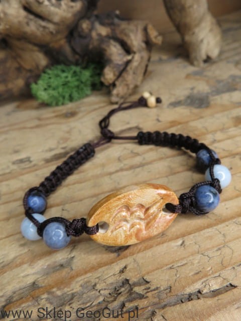 Bransoletka zodiakalna Wodnik – ceramika i kamienie, makrama