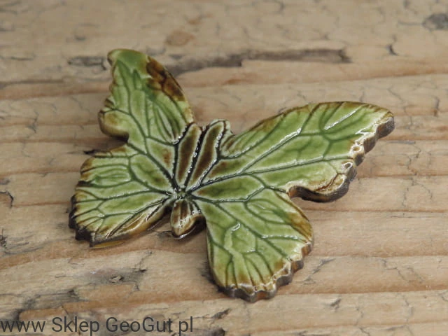 Ręcznie wykonana ceramiczna broszka w kształcie motyla z Pracowni Ceramiki Kuźni Alchemicznej. Pokryta szkliwem w odcieniach zieleni i brązu, dzięki czemu pięknie mieni się w świetle i podkreśla naturalny, jesienny charakter.