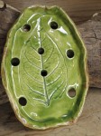 Ceramiczna mydelniczka z odbitym liściem – pistacjowo-zielone szkliwo