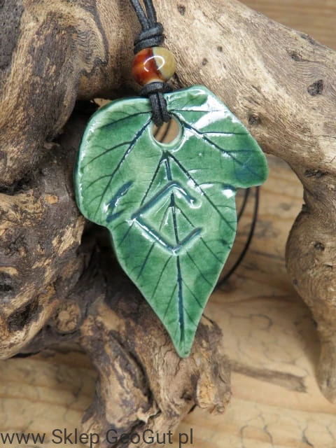 Ręcznie wykonany ceramiczny wisior inspirowany słowiańską boginią Dziewanną – patronką natury, lasu, wolności i niezależności. Wisiorek został dwustronnie szkliwiony w odcieniach zieleni, co podkreśla jego naturalny, leśny charakter.