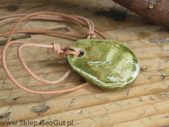 Ręcznie wykonany wisior z ceramiki inspirowany słowiańską boginią Dziewanną, patronką natury, lasu i wolności. Został szkliwiony dwustronnie w odcieniach zieleni przechodzących w ciepły brąz, co nadaje mu naturalny, ziemisty charakter.