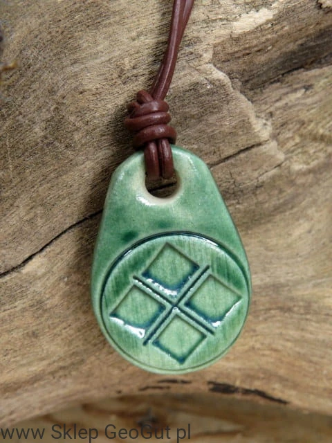 Ręcznie wykonany ceramiczny wisior z symbolem Mokosz – słowiańskiej bogini płodności, ziemi i opieki nad domem. Wisior został pokryty intensywnie zielonym szkliwem, które podkreśla jego naturalny, harmonijny charakter i związek z siłą przyrody. Na powierzchni widoczny jest symbol Mokosz, łączący energię ochrony, opieki i kobiecej mocy.