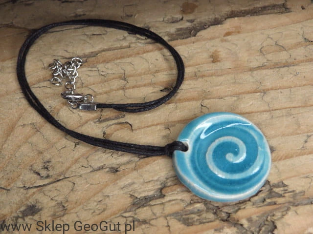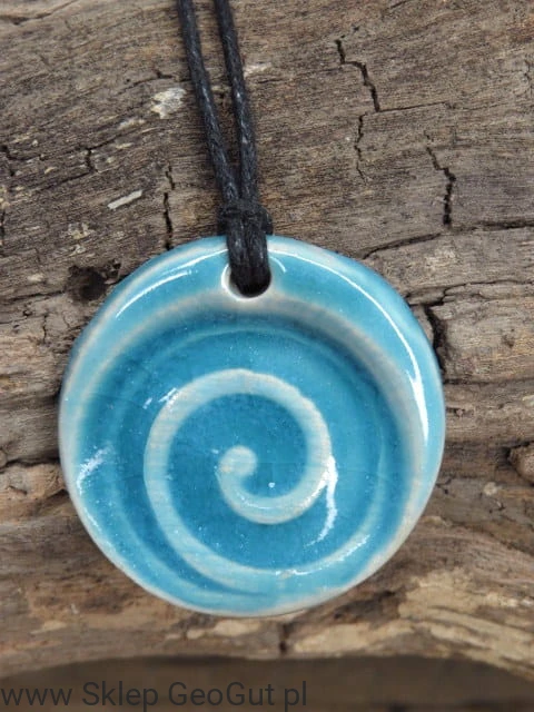 Niebieski wisior ceramiczny z motywem spirali – ręcznie wykonany