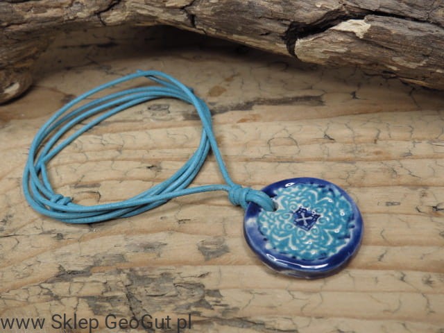 Ceramiczny wisior z mandala w odcieniach niebieskiego – rękodzieło Kuźni Alchemicznej