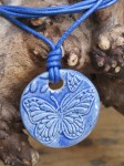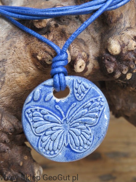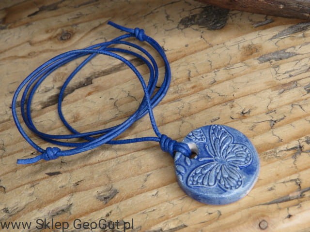 Ręcznie wykonany ceramiczny wisior o wymiarach 3 cm, w granatowym szkliwie na granatowym rzemyku. Idealny dla miłośników naturalnej i etnicznej biżuterii.