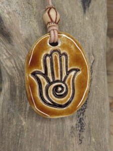 Ceramiczny wisior z symbolem ręki ze spiralą – rękodzieło Kuźni Alchemicznej
