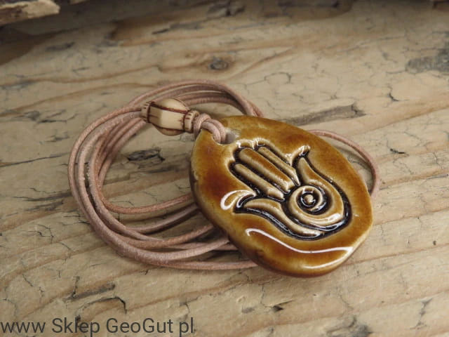 Wprowadź do swojego życia energię ochrony i harmonii dzięki unikatowemu wisiorowi ceramicznemu z symbolem ręki i spiralą, wykonanemu ręcznie w naszej Pracowni Ceramicznej Kuźni Alchemicznej.