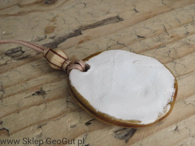 Zawieszenie: beżowy rzemień z regulowaną długością, ozdobiony etnicznym koralikiem