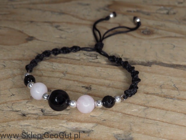 Czarny turmalin i kwarc różowy bransoletka * ochrona w miłości * makrama