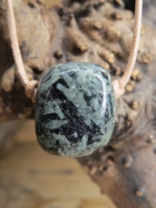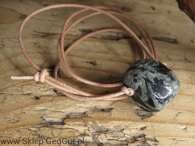 Naturalny amulet z dolerytu ofitowego to wyjątkowy talizman dla osób poszukujących stabilności, uziemienia i ochrony energetycznej. Doleryt zawieszony jest na beżowym, skórzanym rzemieniu z regulacją długości, co umożliwia wygodne dopasowanie do własnych preferencji noszenia. W tradycjach ezoterycznych doleryt ofitowy działa uziemiająco, wspiera stabilność emocjonalną i ochronę przed negatywnymi wpływami z otoczenia. Kamień wspiera wytrwałość, motywację do działania oraz poczucie bezpieczeństwa.