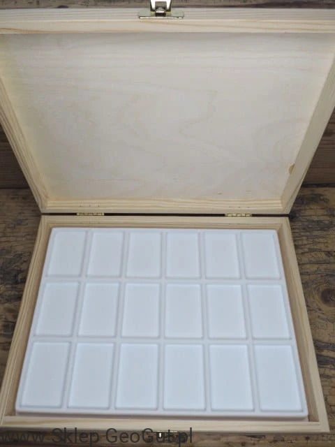 Drewniana skrzyneczka z białą wkładką na pudełeczka z pianą /18
