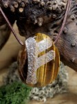 Fehu - runa na kamieniu - przyciąga bogactwo - wisior na rzemieniu tygrysie oko