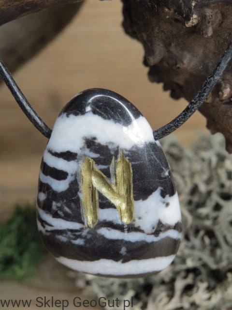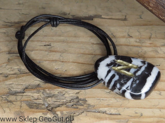 Hagal - runa na kamieniu - marmur zebra - wisior