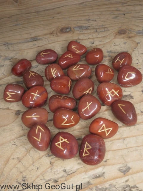 Kamienie runiczne - Futhark starszy - runy na kamieniach - jaspis czerwony