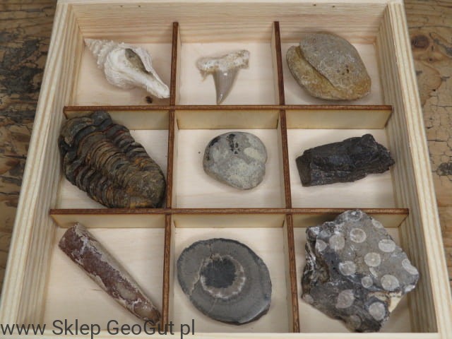 Profesjonalny zestaw dydaktyczny skamieniałości.