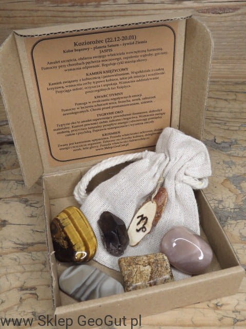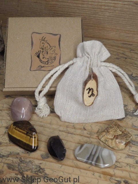 Saszetka z kamieniami zodiakalnymi dobranymi odpowiednio dla danego znaku.