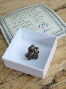 Meteoryt żelazny z certyfikatem autentyczności wystawionym przez członka Polskiego Towarzystwa Meteorytowego.