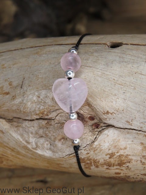 Minimalistyczna bransoletka z sercem z kwarcu różowego