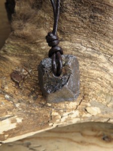 Wisior z kryształu rutylu na rzemieniu to naturalna biżuteria o surowym i jednocześnie eleganckim charakterze.