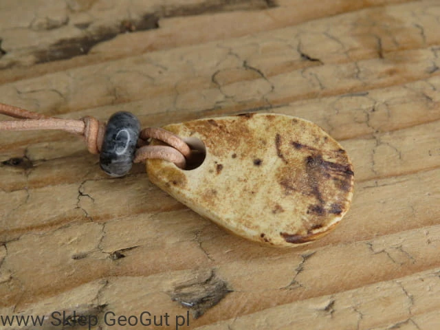Ceramiczny wisiorek szkliwiony na ciepły beż, z naturalnymi przebarwieniami