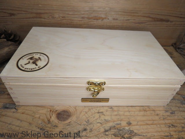 Zestaw w drewnianej skrzyneczce o wymiarach: 28cm x 16cm x 8cm.