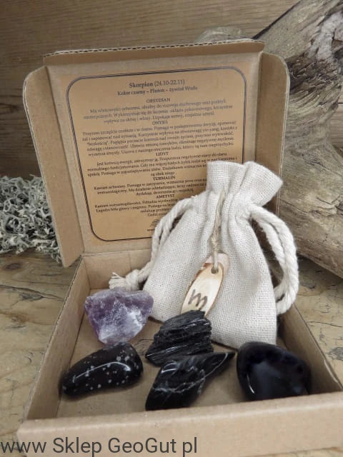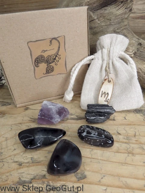 Saszetka z kamieniami zodiakalnymi dobranymi odpowiednio dla danego znaku.