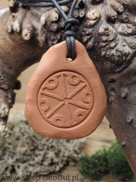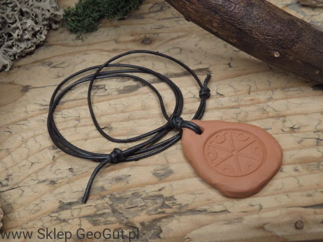 Ręcznie wykonany amulet z symbolem Peruna – słowiańskiego boga burzy, siły i ochrony. Wisior został uformowany z surowej gliny i wypalony w piecu ceramicznym, co nadaje mu surowy, pierwotny charakter i wyjątkową energię.