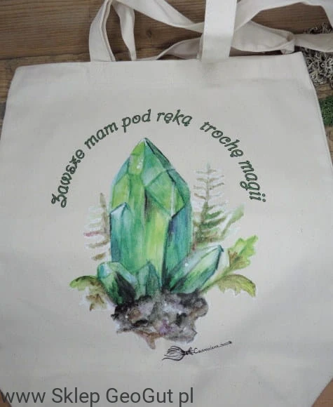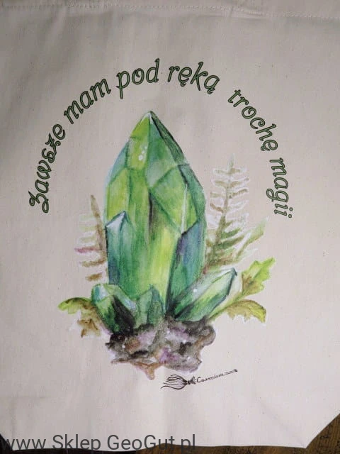 Wzbogać swoją codzienność o odrobinę magii z torbą "Zawsze mam pod ręką trochę magii". Grafika Czaroslavy, utrzymana w subtelnych odcieniach zieleni, przedstawia magiczny kryształ, który dodaje torbie tajemniczego i energetycznego charakteru. Wykonana z wysokiej jakości bawełny, torba jest zarówno funkcjonalna, jak i pełna artystycznego wyrazu, idealna dla każdego, kto ceni magiczne akcenty w swoim otoczeniu.