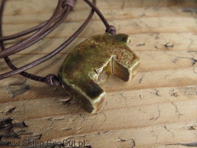 Wisior ceramiczny Miś ze Ślęży – słowiański amulet w szkliwie zielono-brązowym (1)