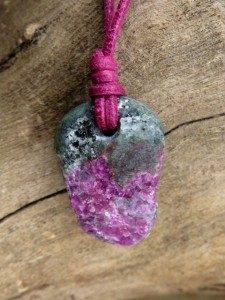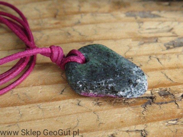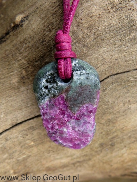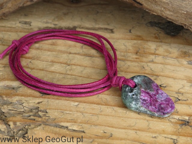 Wisior z rubinu w zoisycie na rzemieniu – kamień równowagi i energii