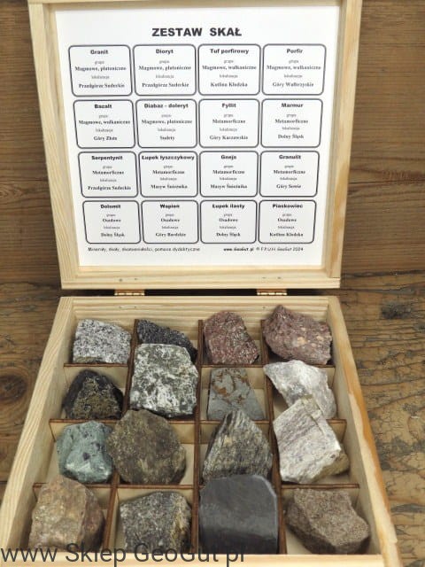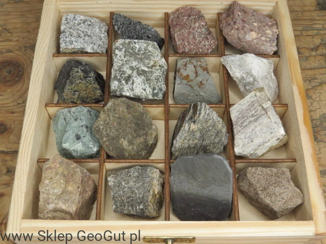 Profesjonalny zestaw dydaktyczny skał. Kolekcja petrograficzna, podstawowe skały.
