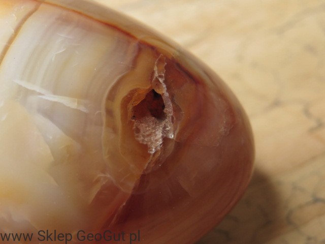 - Właściwości kamienia Przedmiot wykonany z naturalnego minerału/skały. Obecność stref spękań (wychodzących niekiedy na powierzchnię okazu) oraz ewentualnych zagłębień (porowatości) jest cechą naturalną i świadczy o powstaniu w naturalnych procesach geologicznych.
