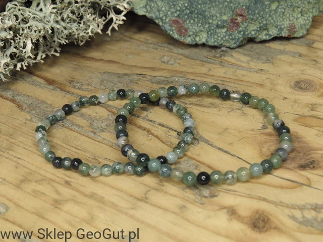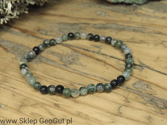 Filigranowa i subtelna bransoletka z kulek naturalnego agatu mszystego.