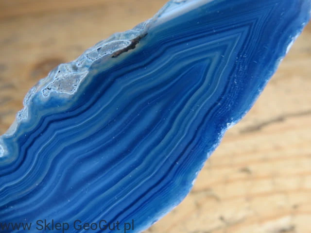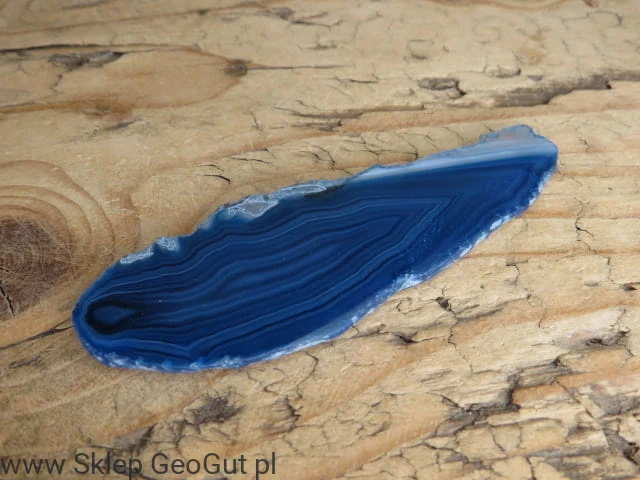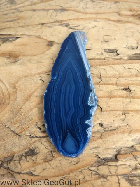 Dwustronnie polerowany plastr agatu. Kamień barwiony na kolor niebieski.