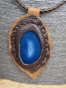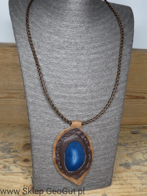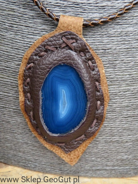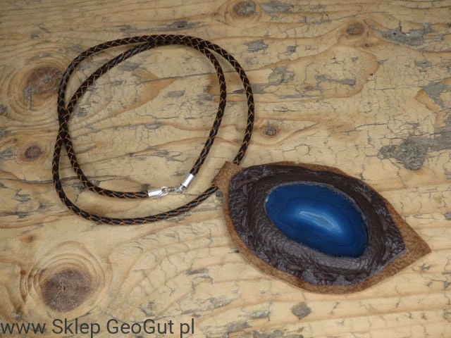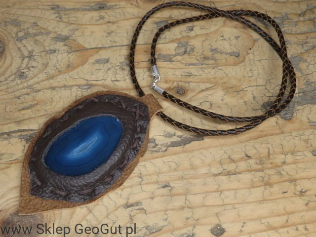 agat niebieski w skórze * wisior na rzemieniu /Ag