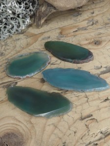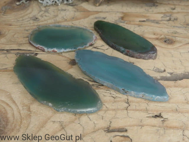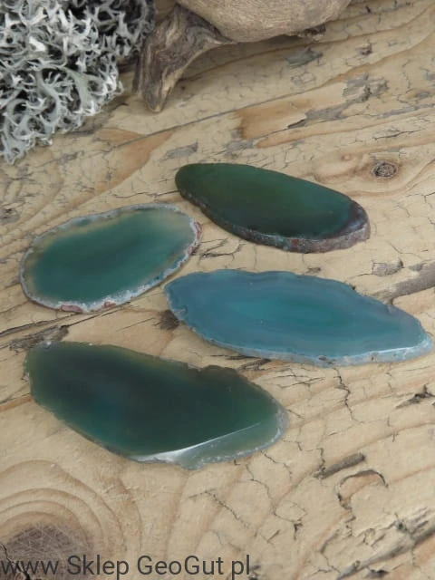 Dwustronnie polerowane plastry agatu. Kamienie barwione na kolor zielony.