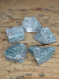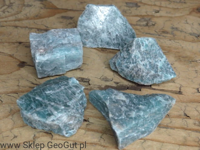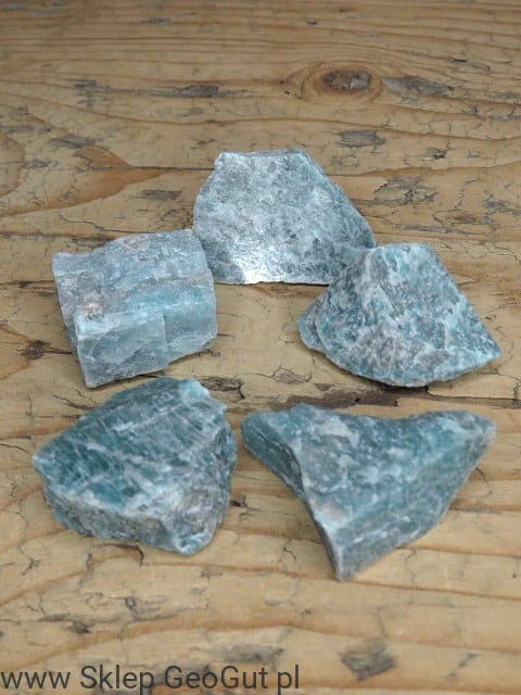 Bryłki amazonitu (odmiana skalenia) o barwie zielonej - tzw. " kamień amazoński ".