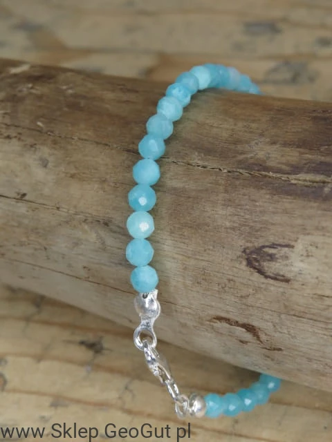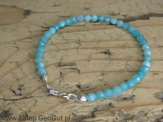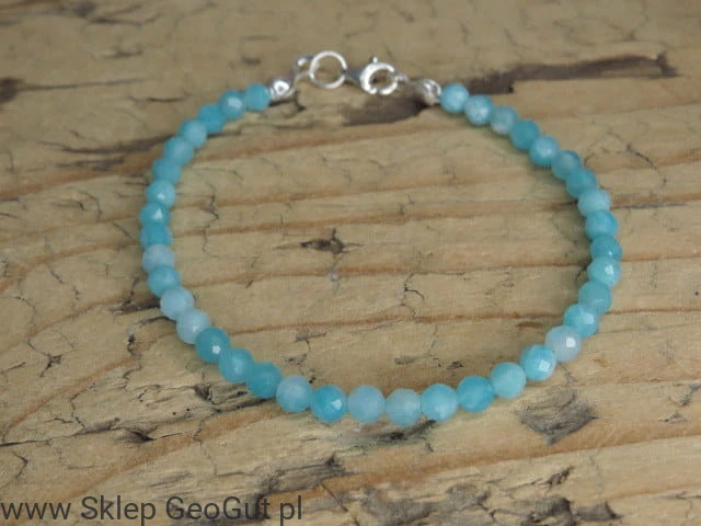 amazonit bransoletka z zapięciem 4mm - szlif fasetkowy /Ag
