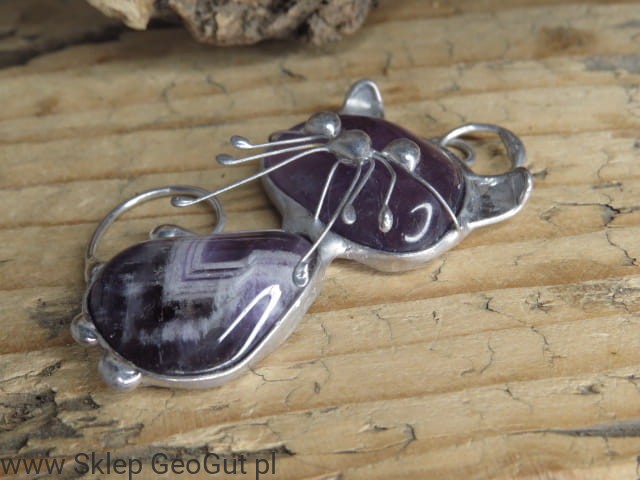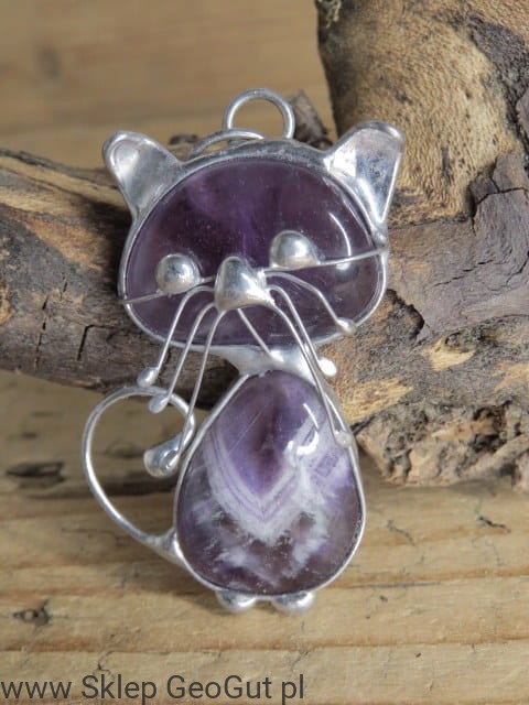 To wyjątkowe polskie rękodzieło artystyczne – idealny prezent dla miłośników kotów, minerałów i biżuterii z duszą.