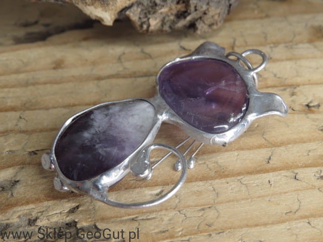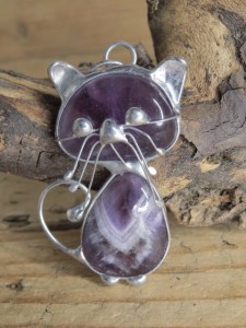 Wisior kotek z ametystu w oprawie miedziano-cynowej (metaloplastyka)