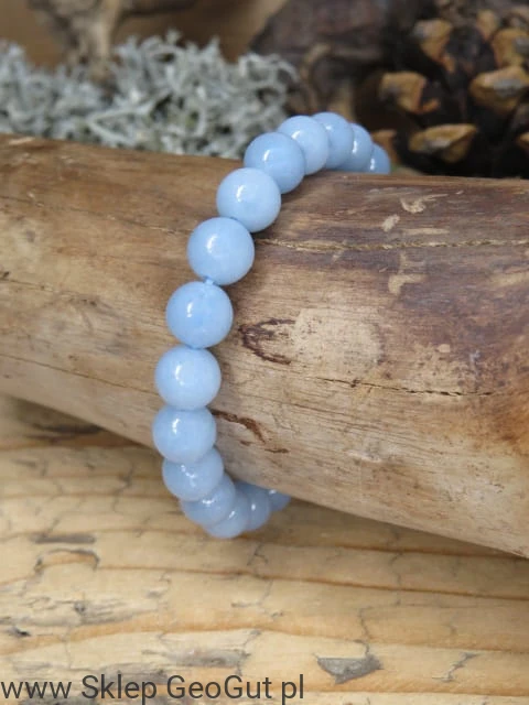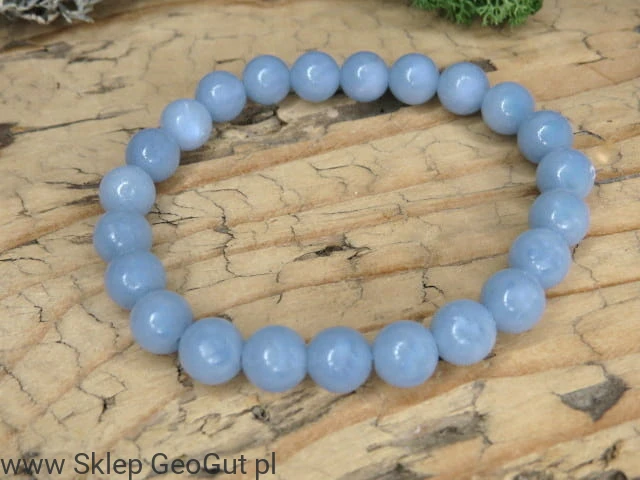 Bransoletka z angelitu sprawdzi się zarówno na co dzień, jak i jako wyjątkowy prezent dla miłośniczki naturalnych kamieni. Zdjęcie przedstawia sprzedawaną bransoletkę.