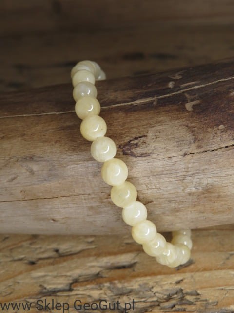 Bransoletka z naturalnego aragonitu wykonana z gładkich, wypolerowanych kulek o średnicy ok. 6 mm. Kamienie nawleczone są na elastyczną gumkę, dzięki czemu bransoletka dopasowuje się do nadgarstka o obwodzie do 16 cm. Utrzymana w ciepłych, pomarańczowych odcieniach, pięknie prezentuje się na ręku i pasuje do wielu stylizacji.