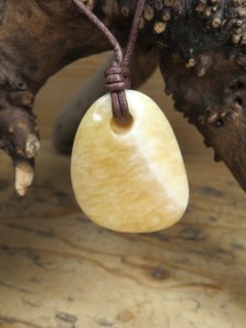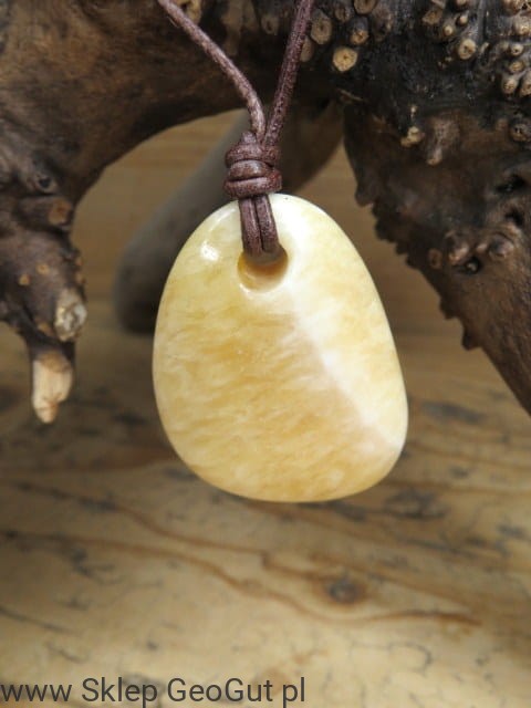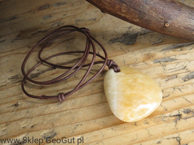 Wisior z aragonitu pomarańczowego na rzemieniu