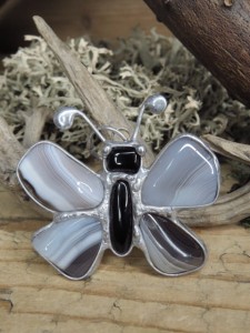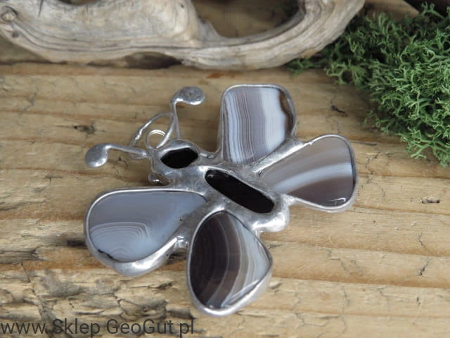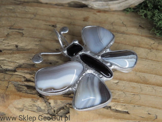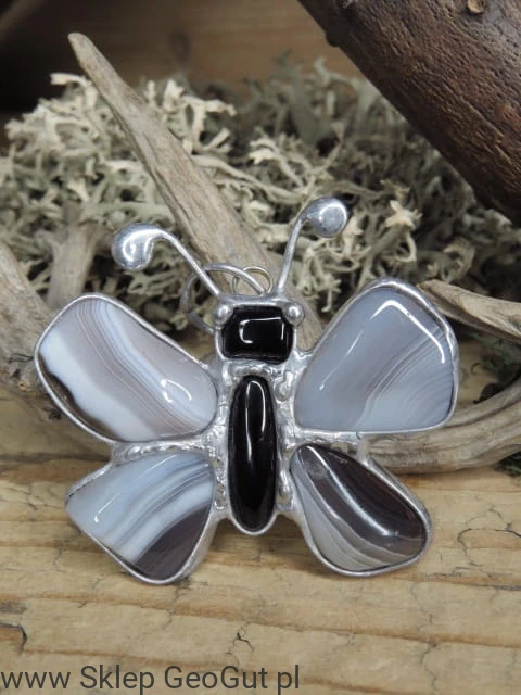 artystyczny wisior motyl z agatu i onyksu /mcp
