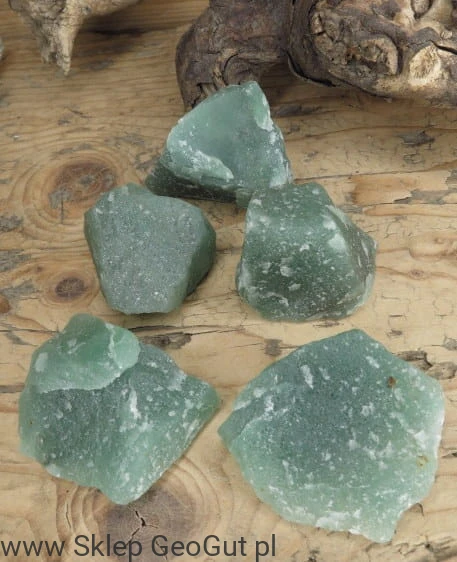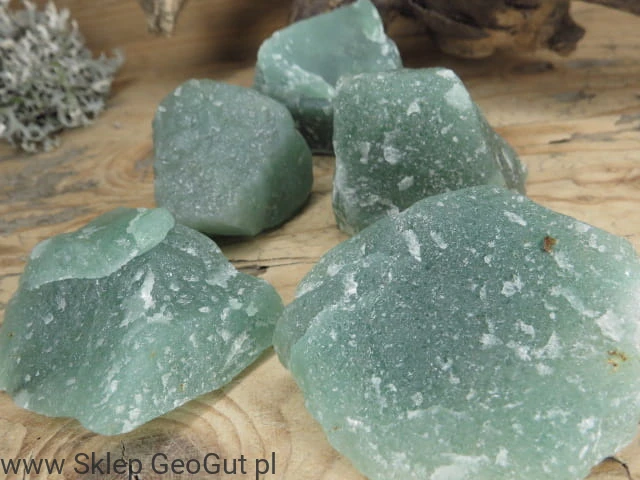 Okazy zielonego awenturynu o intensywnej barwie. Kamień surowy, naturalny.